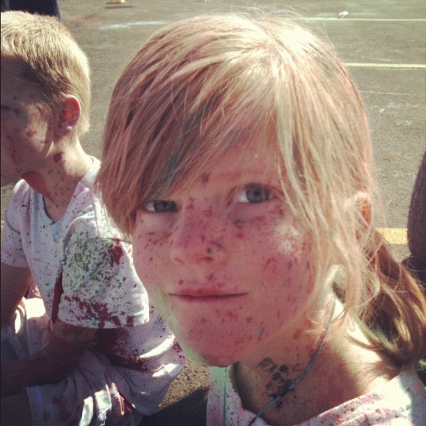One of the big pluses about taking forever to run is when you finish everyone is starting to clean up. So, you get lots of extra free stuff. Joy is a total freegan. If there's something for free she'll get it. The people from Kneaders were providing SUPER delicious french toast to finishers and they were closing up shop when I finished so, they gave her a WHOLE HUGE tray filled with the french toast... FOR FREE. I should have had her get one for me!